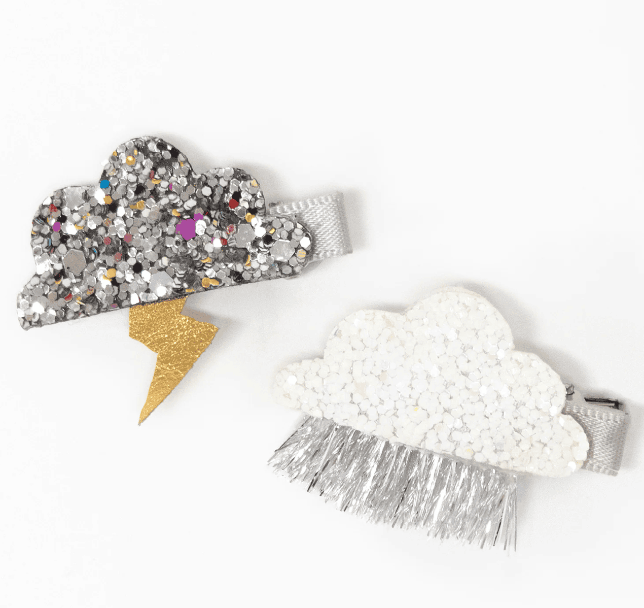 Hair clips with beautiful glitter that can be worn for any weather ;-) These fun and cheerful hdaar clips are the perfect match with any outfit! Sun, rain, thunderstorm or a rainbow, all made of beautiful material and fun glitters.